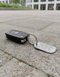 Carry identity in your pocket. A sleek stainless steel dog tag paired with a sturdy key ring — practical, stylish, and built to endure everyday use. Never lose your keys again